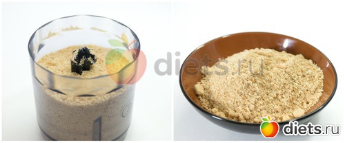 1. Печенье измельчить с помощью блендера в крошку. Если нет блендера, можно переложить печенье в пакет и измельчить его с помощью скалки. Пересыпаем крошки от печенья в глубокую миску.