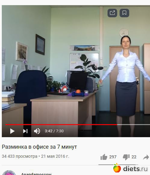 После неё сделала офисную разминку - нашла прикольный канал на Ютуб. Рекомендую посмотреть))