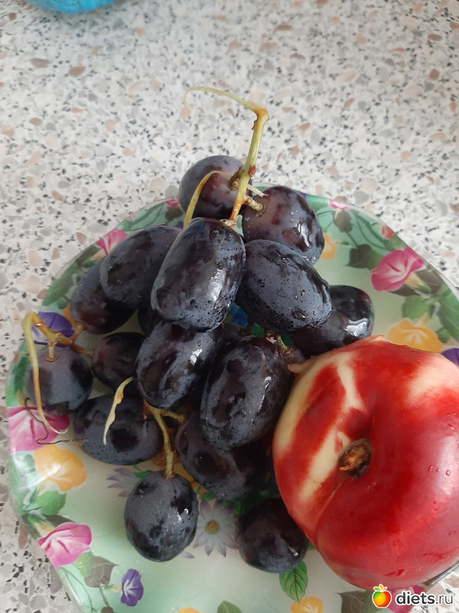 Ещё и фруктиков купил. Черешня опять стоит как космическая ракета, купи очень вкусный тёмный виноград без косточек, кстати, и нектарины.