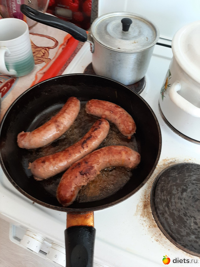 Колбаски с макаронами были пожарены мужу))) А так же сделан ему салат из квашеной капусты, репчатого лука и пахучего подсолнечного масла))) И всё это он ещё с молоком употребил!!! Вот ведь, желудок железный!!!