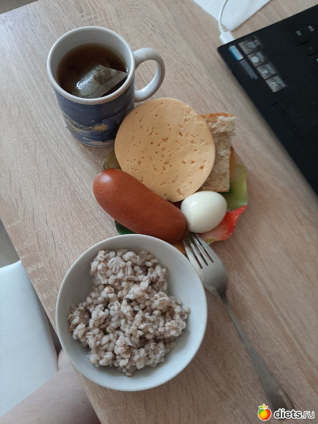 Я была более консервативна: перловка, сарделька, яйцо варёное, бутер с сыром, чай очищающий