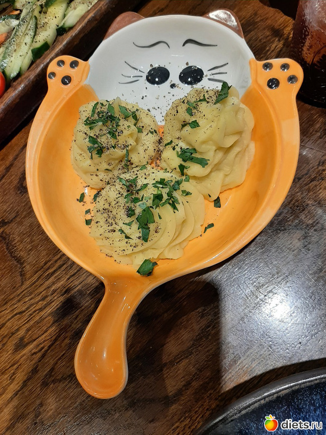 Вот этот салатник с кошечкой умилил необыкновенно, хоть и было непонятно - от остальной сервировки и типа посуды ну очень отличался.