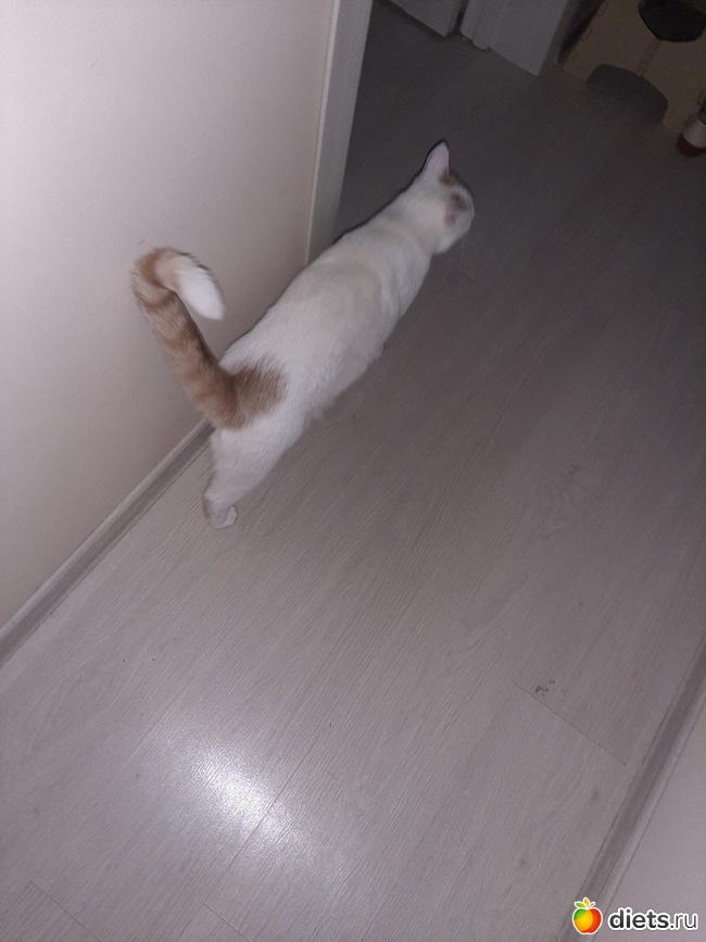 Это Филюшастый. Хоть сейчас у нас нет горячей воды и кастрюлькина помывка, в ванную меня всё равно сопровождает