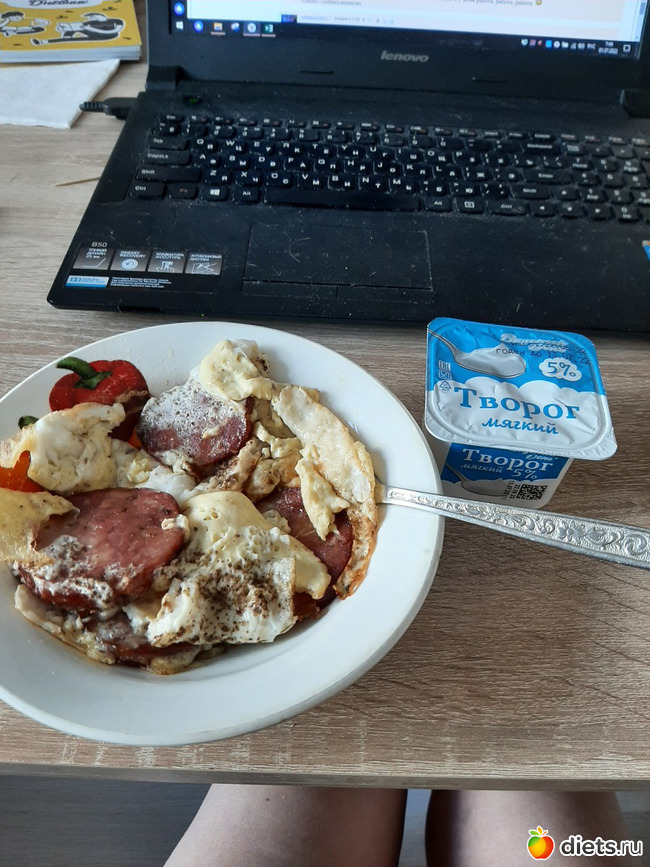 Яичница с колбасой натуральной, творог 5%, и - по делам