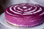 Чернику перемалываем в пюре. Творожную массу делим на 2 части - одна должна быть где-то на четверть меньше второй. В меньшую часть добавляем черничное пюре и перемешиваем.