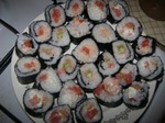 Сперва они все у меня разваливались, никак не могла их нормально скрутить...Еще и рис не могла нормально приготовить,..