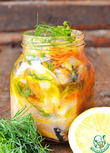 Селедку потрошим, отрезаем голову и хвост. Укладываем в банку и заливаем остывшим маринадом.