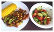 Обед: овощи на решетке запеченные на мангале (дольки картофеля, кабачок и перец) + свежие огурчики, помидорчики, редис и зелень.