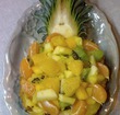 Так же можно добавить ликер или бренди. Ананас разрезать вдоль на 2 части. Вырезать мякоть.