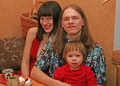 Слева - старший с невестой, справа - младший с женой и дочкой