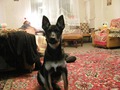 Овчарка -полукровка. Найден в месячном возрасте мужем под магазином.Был весь во вшах и засохшей краске. Выходили,вылечили и вот получился такой балованный нахал,который беззастенчиво пользуется нашей любовью.