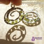 "Сытые рыбки". Серьги из меди с галиотисом и хрусталем Сваровски.