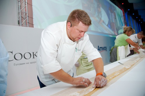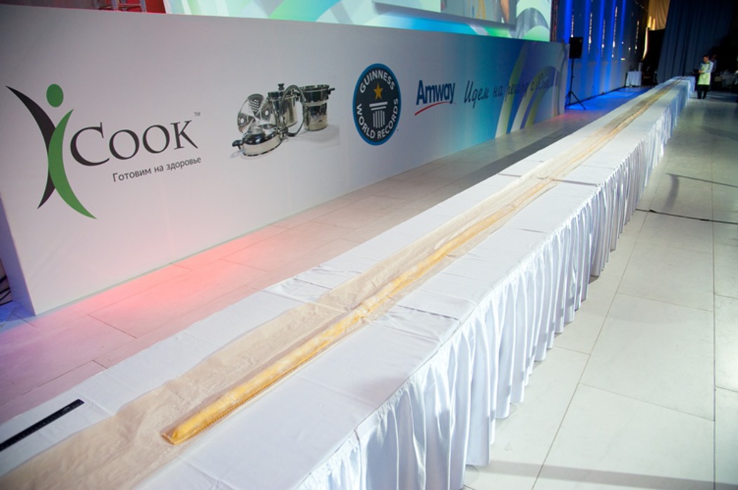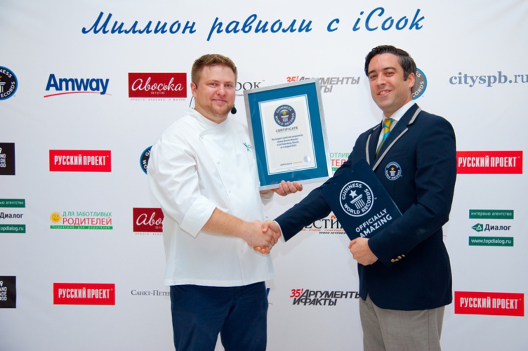 3 августа в Санкт-Петербурге прошло уникальное событие – гастрономический праздник «Миллион равиоли с iCook», организованный компанией Amway, где был установлен новый рекорд Гиннесса в номинации «Самый длинный равиоли» – 29 метров 28 сантиметров! Под руководством шеф-повара Алексея Семенова и известной телеведущей Елены Усановой все гости мероприятия смогли почувствовать себя настоящими кулинарами и попробовать свои силы в создании знаменитых итальянских равиоли.