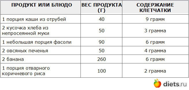 Что обеспечит такую дозу растительных волокон? Приведём примерное содержание клетчатки в популярных продуктах.
