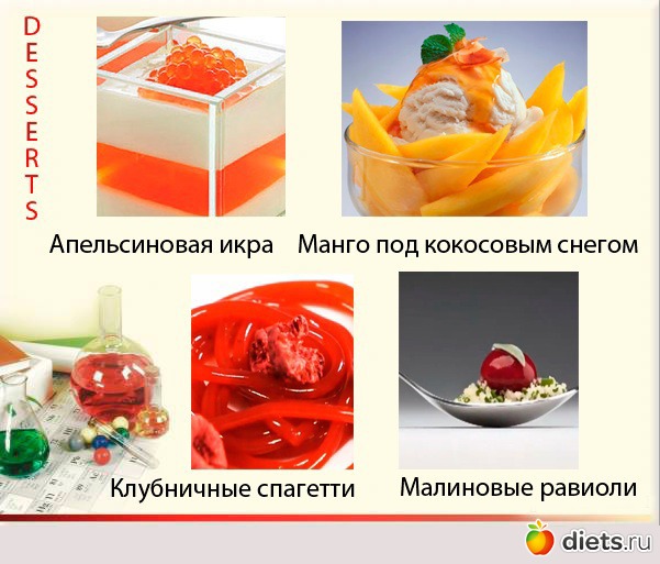Желе можно сделать и в домашних условиях, обычное из пакетика или с помощью желатина. В чем подвох? Молекулярная желатинизация – это искусство создания обычных, казалось бы на первый взгляд, блюд, из необычных продуктов. Яйцо со вкусом манго, спагетти из рукколы, медовая икра – такие изыски на тарелке приятно удивят.