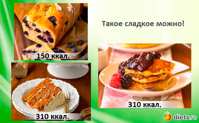 Просто в два раза меньше, половину заменяем на фрукты или овощи. Такой вот простой секрет! Фрукты и овощи с высоким содержанием воды наполняют желудок, не "награждая" нас большим количеством калорий.