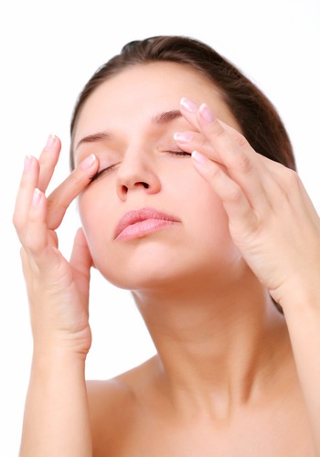 2. Закройте глаза, слегка помассируйте область бровей и мышцы под глазами. Ваши движения должны быть направлены от носа к вискам. Не напрягайте веки.