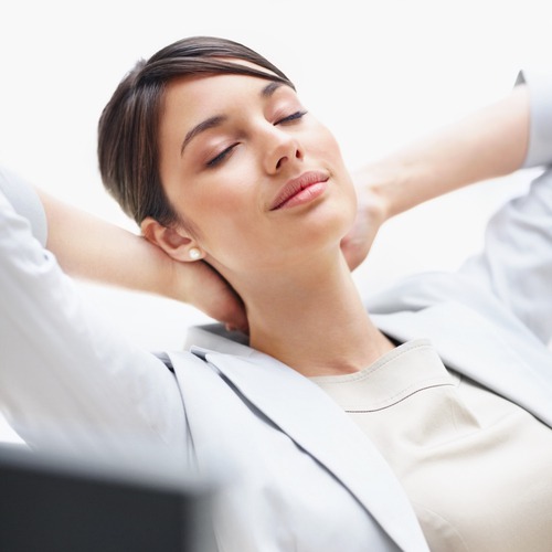1. Откиньтесь на спинку стула, сделайте глубокий вдох, прикройте глаза и затем крепко зажмурьтесь. Откройте глаза, выполняя выдох. Повторите 4 — 5 раз.