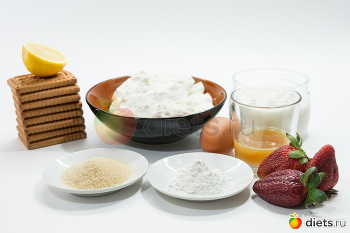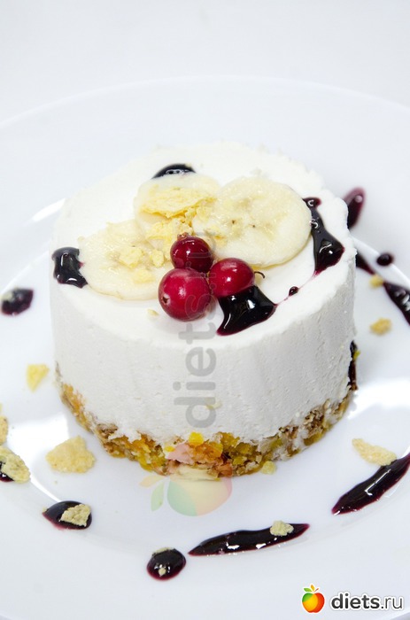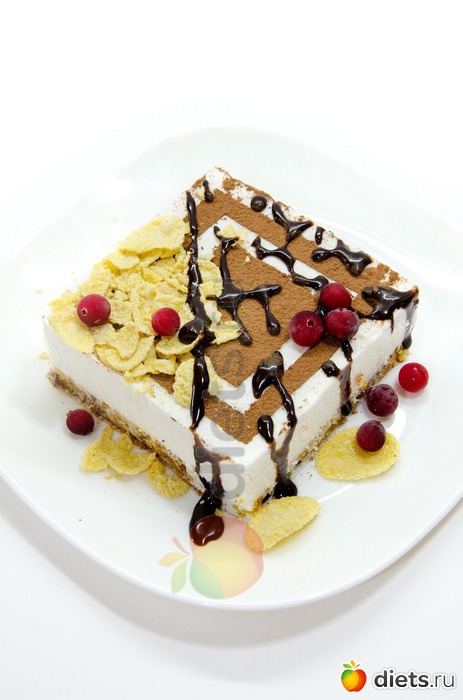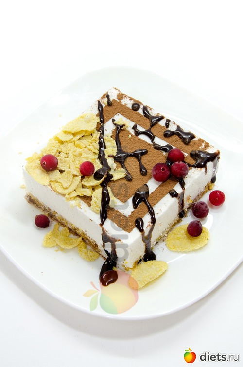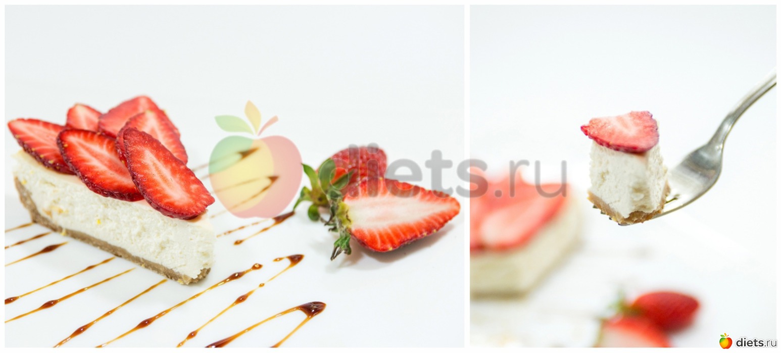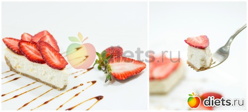 В 100 граммах диетического чизкейка содержится 214 ккал: белки 13 г, жиры 6 г, углеводы 27 г.