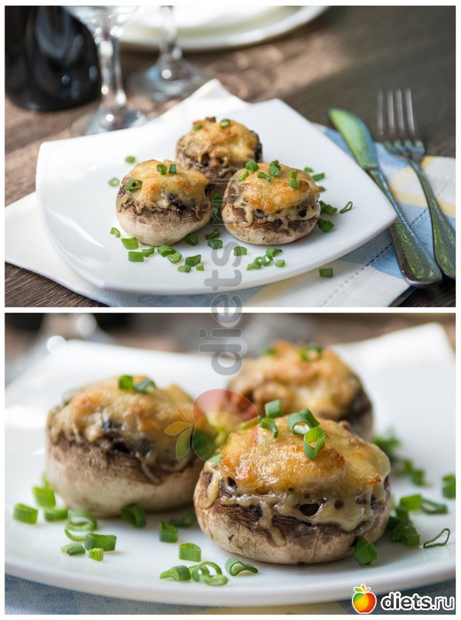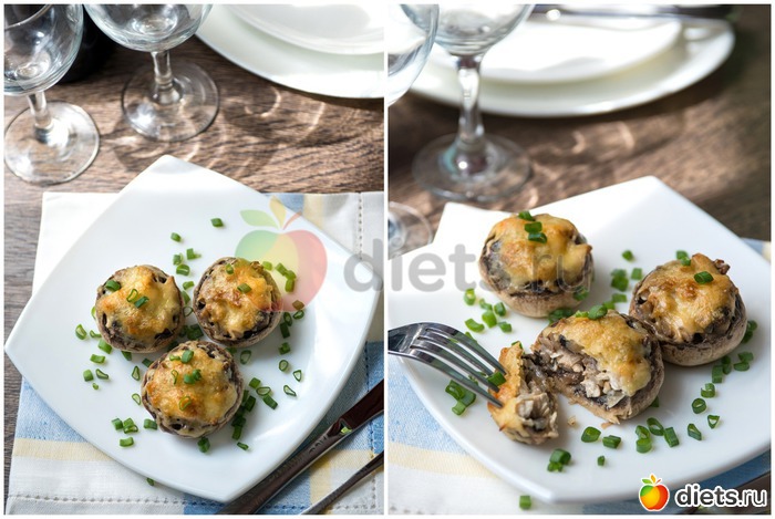 Сегодня Диетс.ру предлагает вам рецепт фаршированных шампиньонов. Это настоящая находка для тех, кто следит за калорийностью своей пищи и предпочитает здоровое и правильное питание!