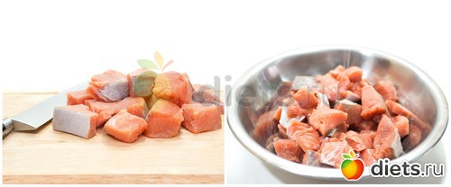 1. Рыбу нужно хорошо промыть, удалить кожицу и кости, нарезать на средние кусочки, посолить и на время отставить в сторону.