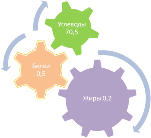 Калорийность блюда на 100 граммов 105,2ккал: белки 0,4г, жиры 0г, углеводы 25,9г.
