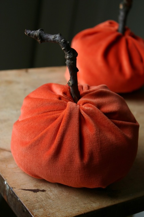 Ритуальную тыкву попроще можно соорудить из бумаги, связать из ниток или сшить из оранжевого мешочка. Конечно, бравые пожарные не одобрят огонь в таких пожароопасных тыквах, поэтому светильники мы поместим в стеклянные баночки, декорированные различными устрашающими элементами.