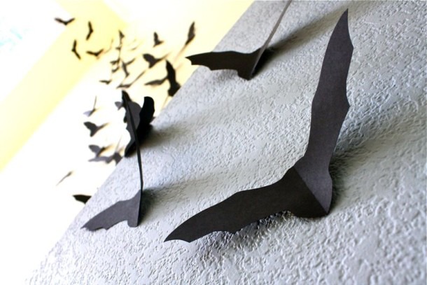Кроме того, вырезанные из цветного картона летучие мыши придадут квартире характерную атмосферу и без огоньков. Более сложный вариант бумажного воплощения отпугивателей духов – сложить оригами в виде паука или мыши, но эта затея требует некоторых навыков и умений.
