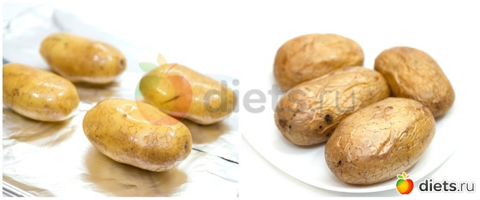 1. Одинаковый по размеру картофель необходимо тщательно промыть, слегка смазать растительным маслом и запечь в духовке, разогретой до 180 градусов, до готовности. На это потребуется около 50 минут.