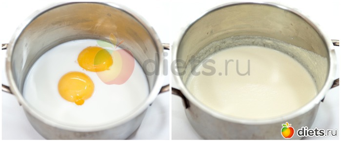 2. Тем временем нужно отварить и очистить креветки, обжарить грибы в небольшом количестве растительного масла. Теперь приготовим соус. Для этого в сотейник необходимо влить сливки, добавить к ним желтки и муку, поставить на медленный огонь вариться до однородной массы, постоянно помешивая, затем влить лимонный сок, перемешать, а готовый соус процедить.