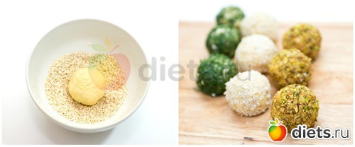 5. И в кунжуте. Готовые шарики охлаждаем в холодильнике, после чего додаем к столу.