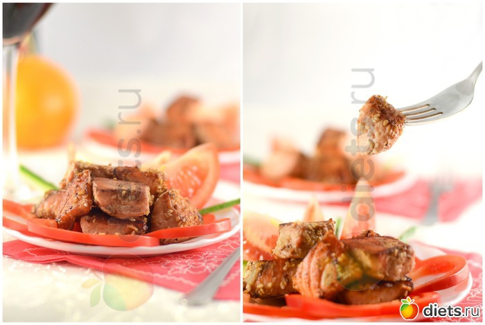 5. В сковороде разогреть немного масла и на среднем огне обжарить шашлычки до золотистой корочки, после чего довести до готовности в духовке, разогретой до 180 градусов, около 10 минут. Нужно следить, чтобы шашлычки не пересохли. Также можно сразу запечь их в духовке до готовности – таким образом они получатся более диетическими, но без красивой румяной корочки. Подаем горячими.