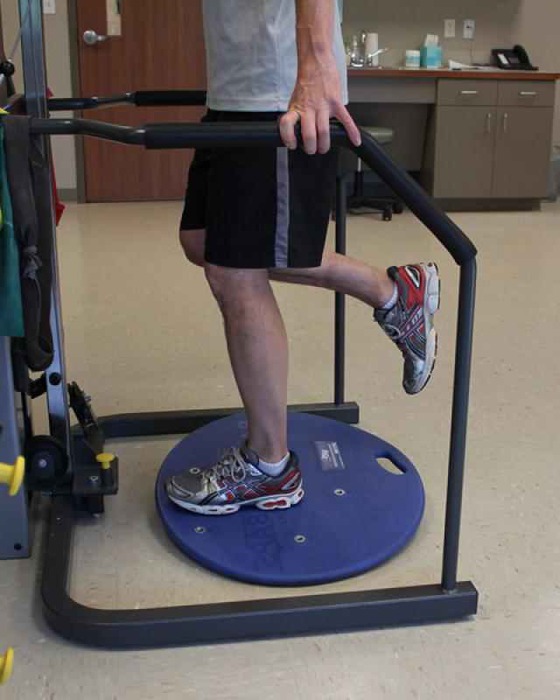 Если вы уже довольно сносно держитесь на этом тренажере на двух ногах, начните балансировать на одной ноге, увеличивая градус сложности, закрывая глаза или приседая.