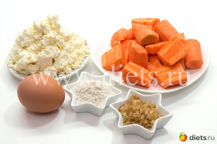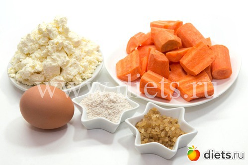 а я делала из 200 грамм нежирного творога. четырёх яиц и кило морковивзяла) всего три ингридиента)