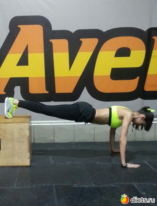Из положения «упор на ладони прямых рук, расположенные на полу, и мыски ног, зафиксированные на поверхности бокса», можно выполнять сразу несколько упражнений: