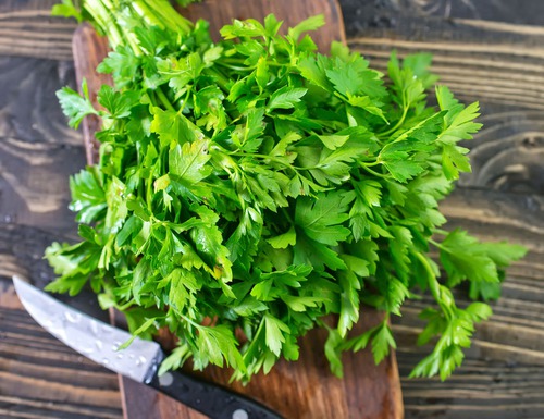 В петрушке присутствует большое количество полезных веществ, в том числе витамины группы В, а также магний, фтор, железо. Благодаря большому количеству витамина С, эта зелень может оказывать отличное влияние на поддержание иммунитета организма, что, несомненно, очень важно в осенне-зимний период. Представительницам прекрасной половины человечества этот вид специй также особенно полезен, так как он способствует уменьшению менструальных болей и помогает регулировать менструальный цикл. Известно, что петрушка может снижать температуру тела. Данное свойство присуще этой зелени за счет содержания в ее листьях эфирных масел. Поэтому при переохлаждении советуют обязательно съесть хоть немного петрушки.