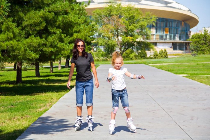 Я работаю на себя, давно и небезуспешно, а Галя – на большую компанию размером в полгосударства. Но когда дела «государственной» важности заканчиваются ближе к вечеру, мы часто в охапку с любимым чадом (Маринка, 12 лет) зажигаем в правильных городских местах. Ролики-ВВЦ-самокаты-там же.