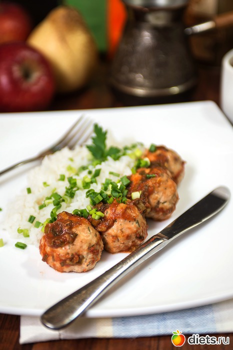 5. Подаем рыбные тефтели горячими, например, с рисом на гарнир.