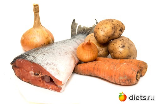 1. Кастрюлю заполняем водой, отправляем туда лаврушку, одну небольшую луковицу, небольшую часть очищенной морковки, перец горошком и чисто промытую рыбку. Ждем, пока вода закипит, и варим бульон, снимая пенку, минут 30-35. После чего рыбу вынимаем в отдельную посуду, пусть она остынет, а бульон процеживаем через сито.