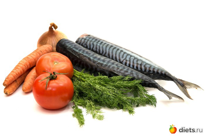 100 грамм готовой рыбы под овощами содержат 175 ккал: белки 14 г, жиры 11 г, углеводы 5 г.