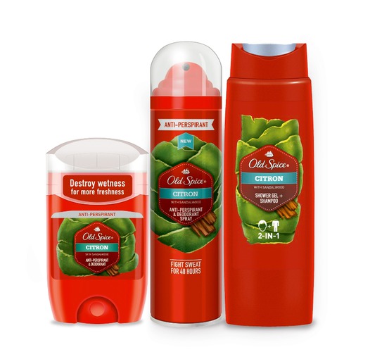 Citron от Old Spice – это первая коллекция с супер натуральным ароматом природной свежести. В нее входит гель для душа, аромат которого поможет проснуться даже самым хмурым утром, и антиперспиранты в форме спрея или стика. Целое семейство цитрусовых, с которым ты можешь быть уверенным в сбивающей с ног свежести на протяжении 48 часов!