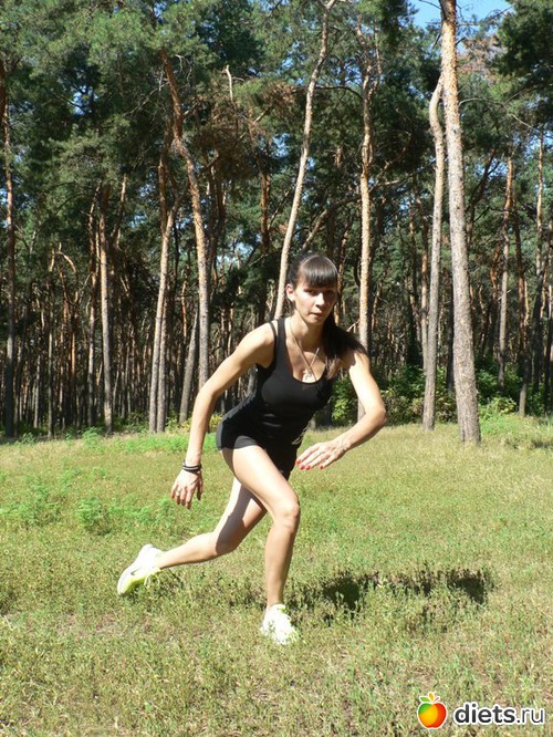 В течение минуты бегите на месте, подавая пятки назад к самым ягодицам.