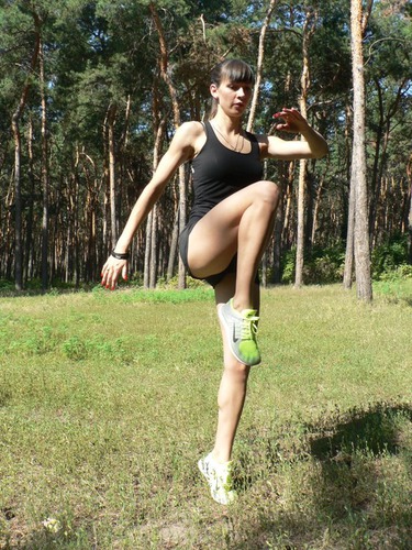 Упражнение 1. Бег на месте с высоким подъёмом коленей
