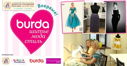 Во-первых, отличная новость для любителей моды и шитья! Впервые в рамках выставки «Формула Рукоделия» специальный проект «BURDA. Шитье, мода и стиль» от Издательского дома «Бурда», Академии Burda и компании «Формула Рукоделия». Уникальная интерактивная коммуникационная площадка, на которой пройдут мастер-классы в режиме нон-стоп, лекции по шитью и дизайну, консультации по стилю и модным тенденциям от BURDA и приглашенных экспертов, конкурсы и дефиле, а также демонстрационные стенды от партнеров. Центральным проектом на площадке Burda станет выставка винтажных нарядов, отшитых по оригинальным выкройкам из журнала. Каждое десятилетие с момента основания Burda 50-x и до наших дней будет представлено нарядным платьем. На главной сцене выставки состоится дефиле-показ победительниц редакционного конкурса "Burda Подиум" в одежде отшитой по выкройкам из журнала. А поклонники журнала Burda смогут лично встретиться с его главным редактором – Марианной Макаровой!