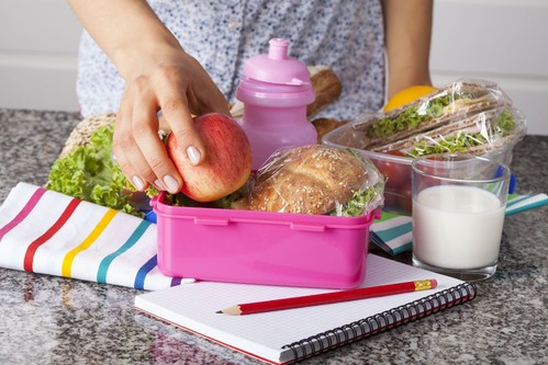 Порой ребенку необходимо дать с собой в школу какую-либо пищу, чтобы он мог перекусить между занятиями. В этом случае можно приготовить бутерброды с запеченным мясом или сыром, булочки с творогом или пирожки, запеканку или рогалики. Хороши также будут натуральные йогурты, сырники и фрукты. При этом обязательно следует подумать и над тем, как правильно упаковать продукты, чтобы прием пищи во время перерыва в школе не доставил малышу определенного дискомфорта. Бутерброды можно заворачивать в специальную пленку, а также можно приобрести контейнеры.