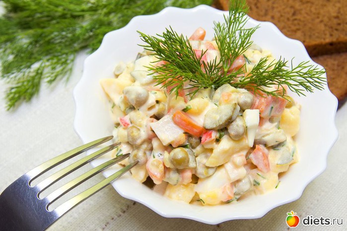 Кроме того, даже традиционные праздничные блюда можно приготовить несколько иными способами, и сделать их диетическими. К примеру, популярный салат «Мимоза» также может стать низкокалорийным, если использовать следующий рецепт.