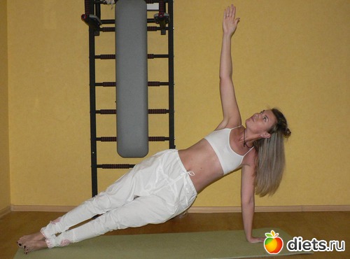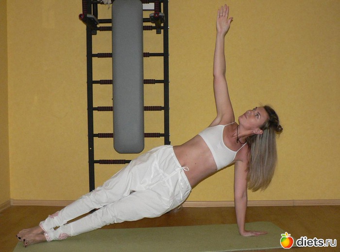 Для ее выполнения зафиксируйте тело под углом к полу, опираясь на ладонь нижней руки и внешнюю сторону стопы нижней ноги. Верхнюю прямую руку поднимите вверх и устремите на нее взгляд. Следите за тем, чтобы ладонь опорной руки располагалась строго под ее плечом, а корпус с ногами представляли собой одну сплошную линию. Затем выполните асану в зеркальном отражении.