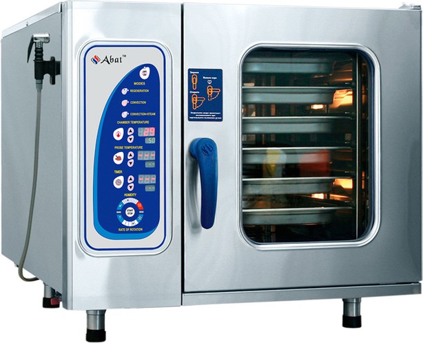 Устройство может работать от электрической или газовой сети, управляться механическим, электронным или сенсорным способом. Пароконвектоматы бывают двух типов:
