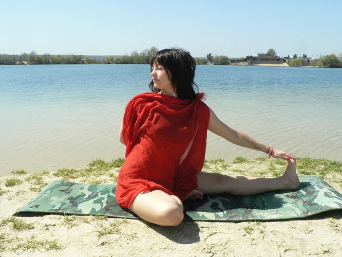 Из предыдущей асаны выпрямите корпус, левую ногу оставьте прямой на полу, а правую – согните в колене, ее стопу подтяните как можно ближе к паху и прижмите к внутренней поверхности бедра противоположной ноги. Коленом согнутой ноги потянитесь в пол.