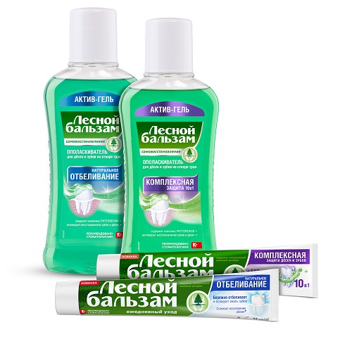 Ополаскиватель (1 шт., вид - на выбор спонсора), зубная паста (1 шт., вид - на выбор спонсора), зубная щетка от бренда (1 шт.) "Лесной бальзам"